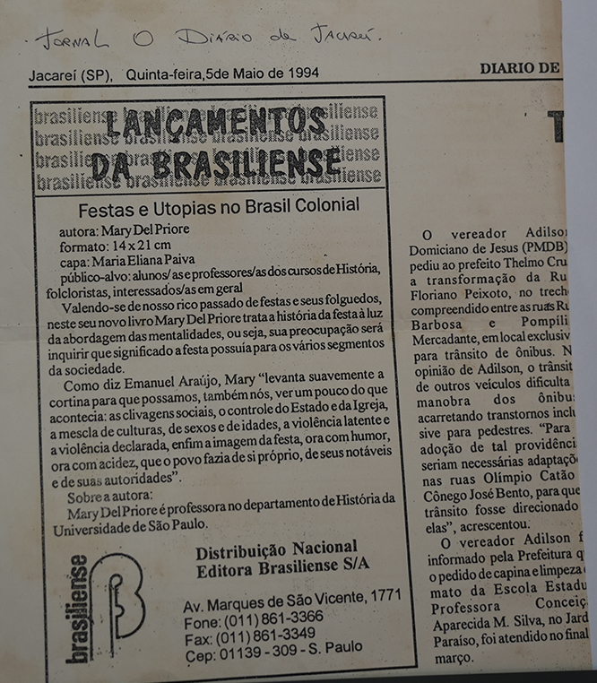 Jornal O Diário de Jacareí – Festas e Utopias no Brasil Colonial